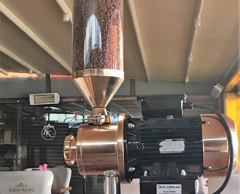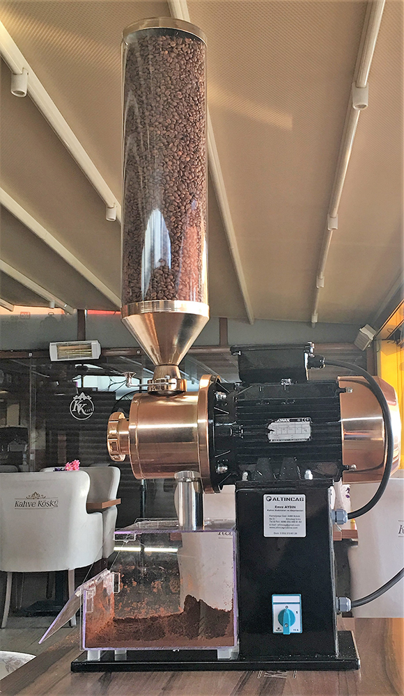 Кофемолка D10; Он предназначен для кафе с высоким портфелем клиентов и циркуляцией людей, а также продуктовых магазинов, которые продают своим клиентам свежемолотый кофе. Благодаря шлифовальным станкам, изготовленным из легированной стали, он может без проблем измельчать турецкий кофе до 1500 килограммов; помимо кофе, он может быть предпочтительным при производстве многих образцов специй и химикатов.